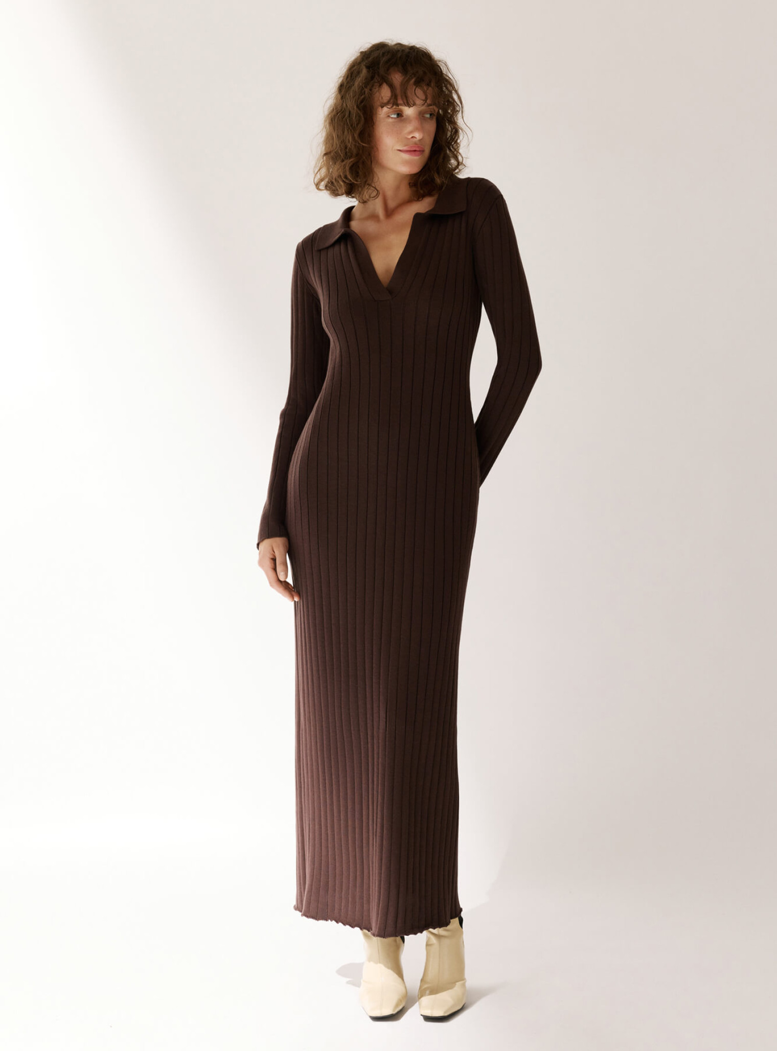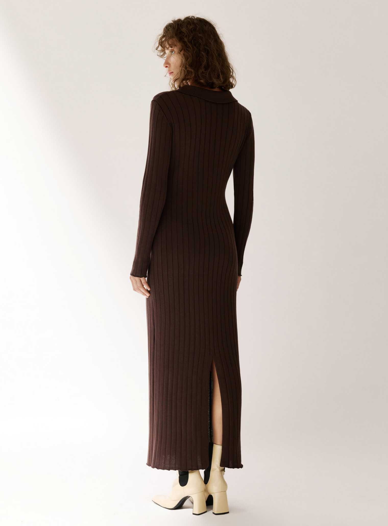 Длинное теплое коричневое платье поло с длинным рукавом "Nová"