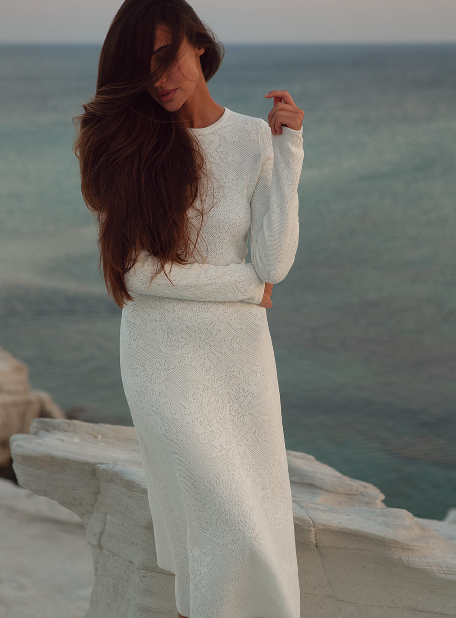 Изысканное платье из нежной ажурной вязки, которое мы бережно изготавливаем, выплетывая каждую петельку. Выполнена в длине меди и макси с цветочным принтом.