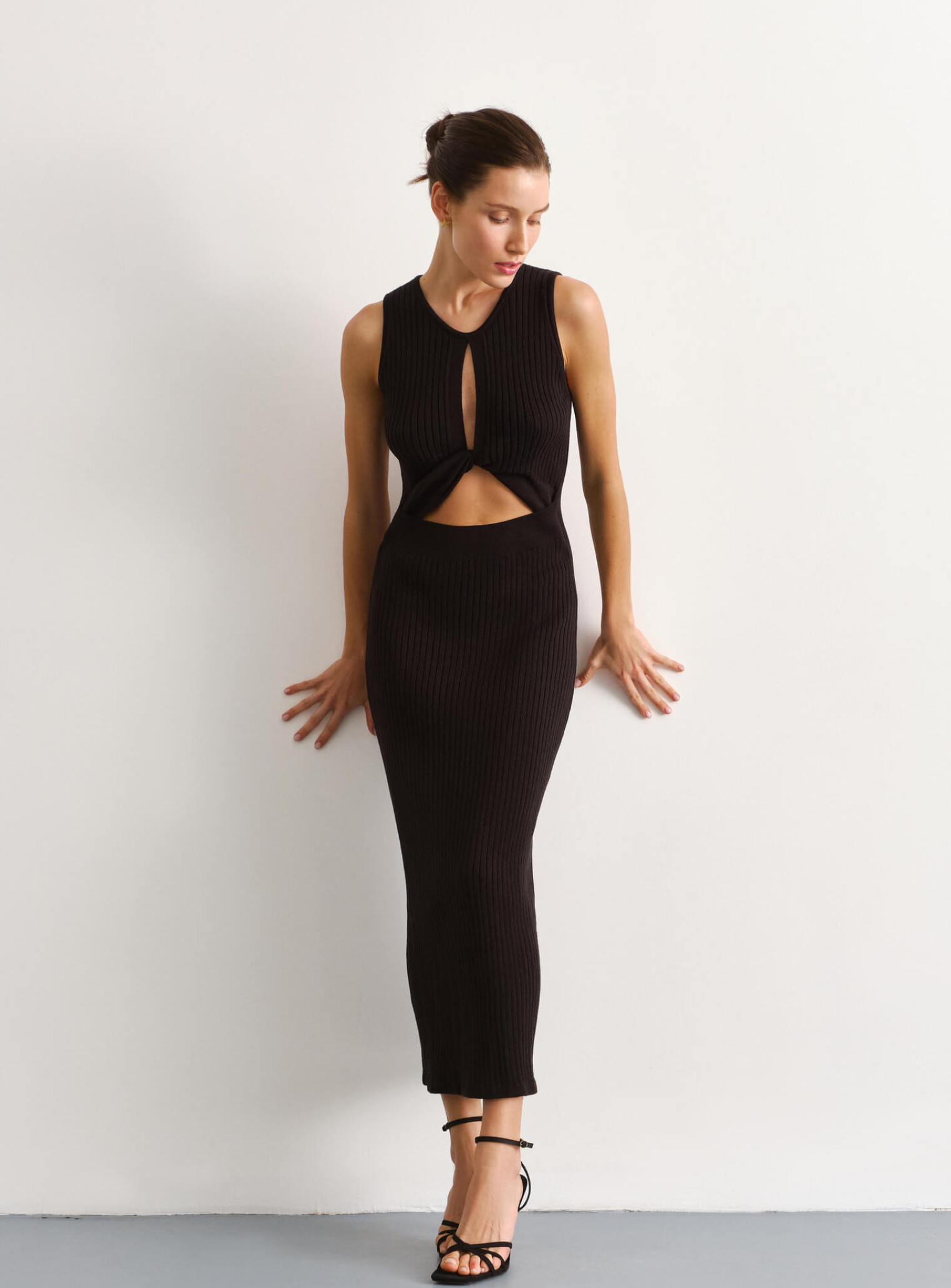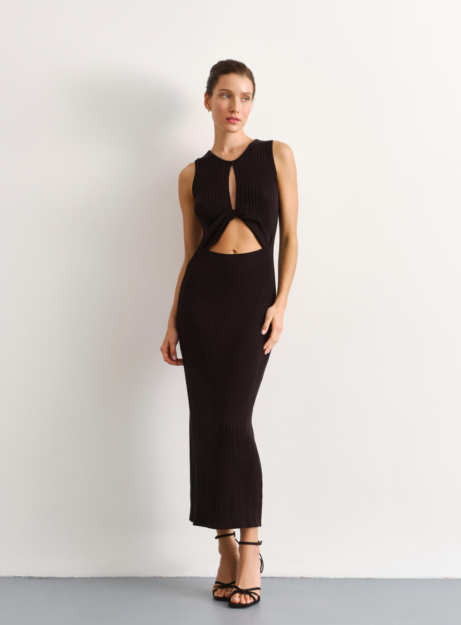 Такое черное платье круглый вырез с открытыми плечами подчеркивает вашу хрупкость и изящность. Оно идеально подойдет для любого события. Платья без рукавов можно сочетать с массивными золотыми украшениями, босоножками на тонких ремешках и каблуке и гладкой прической. Это станет идеальным вариантом для светского ужина, свадьбы или вечеринки. Для дневного времени платье рубчик с разрезами лучше комбинировать с сандалиями и рубашкой оверсайз. Такой образ будет уместным в путешествии или для прогулки. Уникальность модели заключается в сочетании расслабленного трикотажного стиля и вечернего фасона, что позволяет носить его как в отпуске, так и на свидание, всегда оставаясь в центре внимания.
