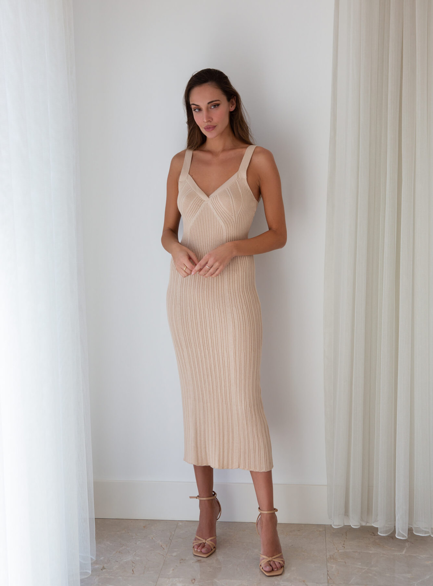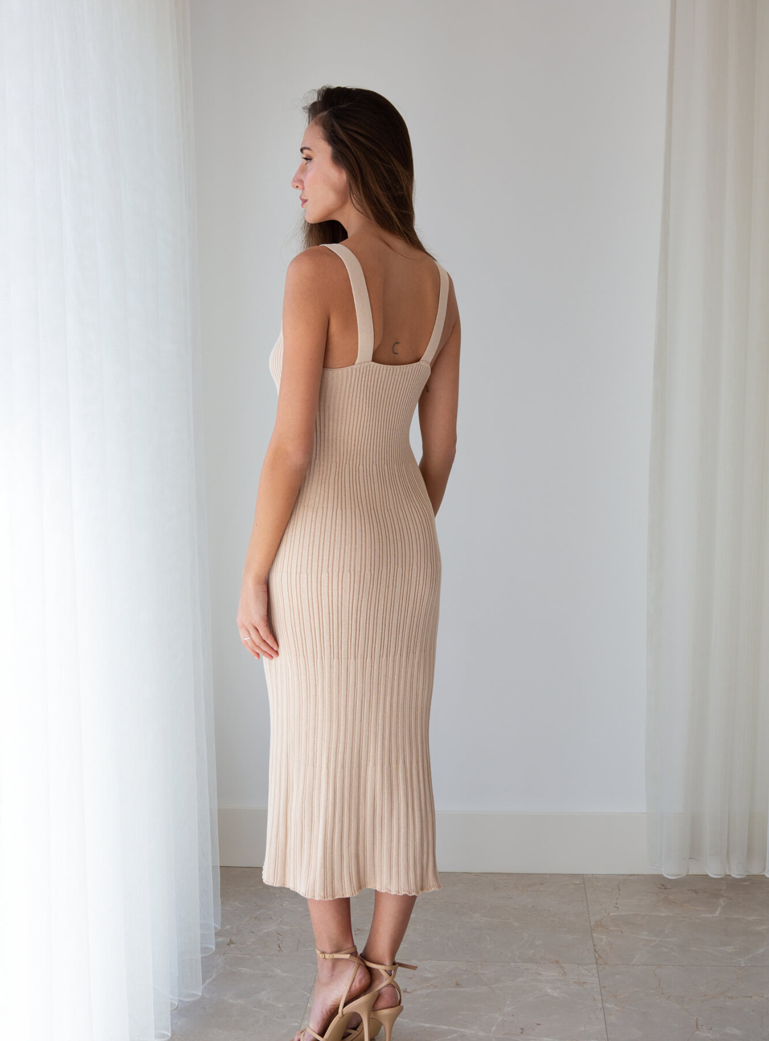 Элегантное платье из нежного хлопка станет твоим любимым, благодаря акцентному декольте и вертикальным фактурным линиям, делающим силуэт стройнее. Выполнена в натуральных тонах, чтобы подчеркнуть твою природную красоту.