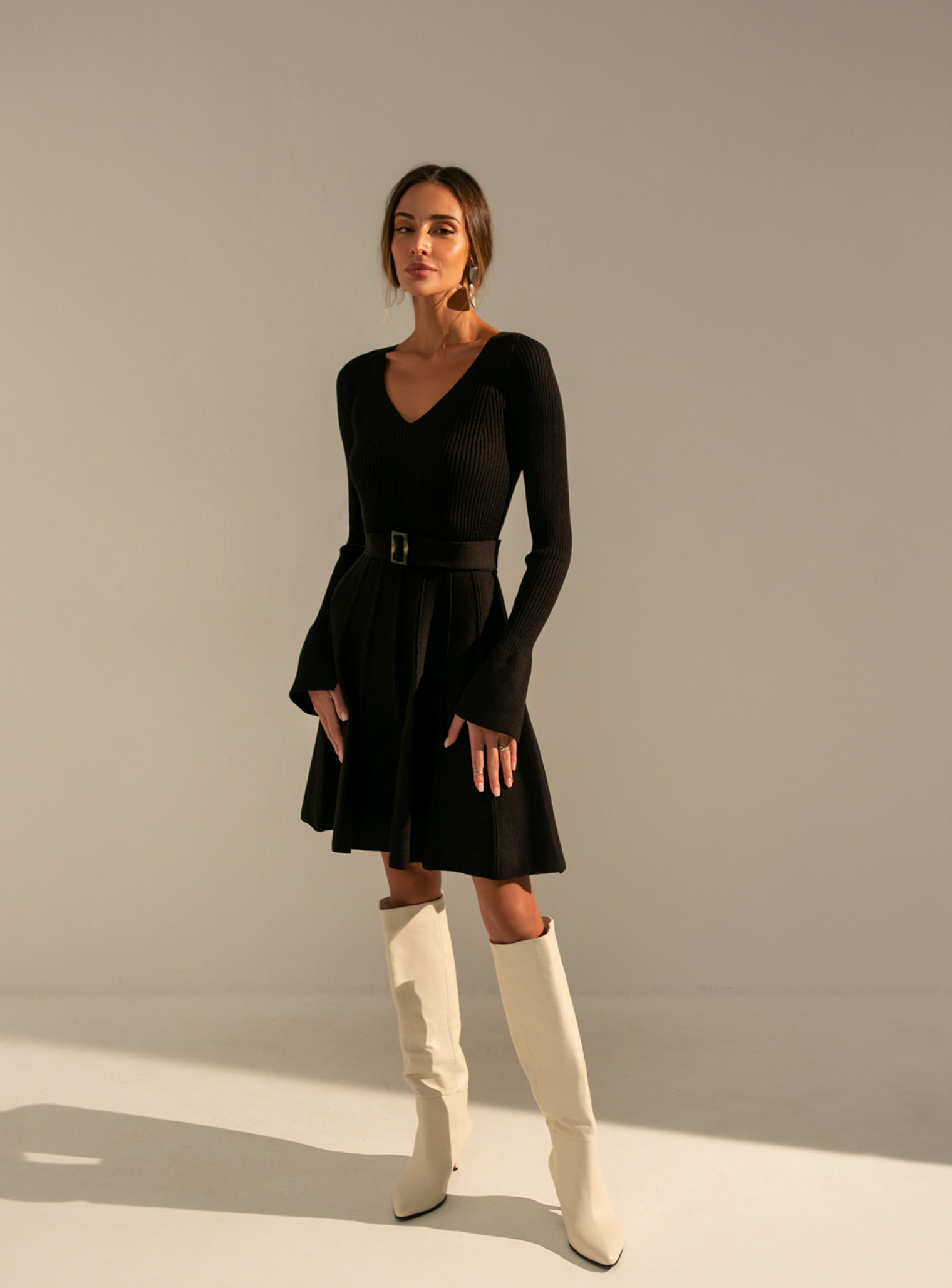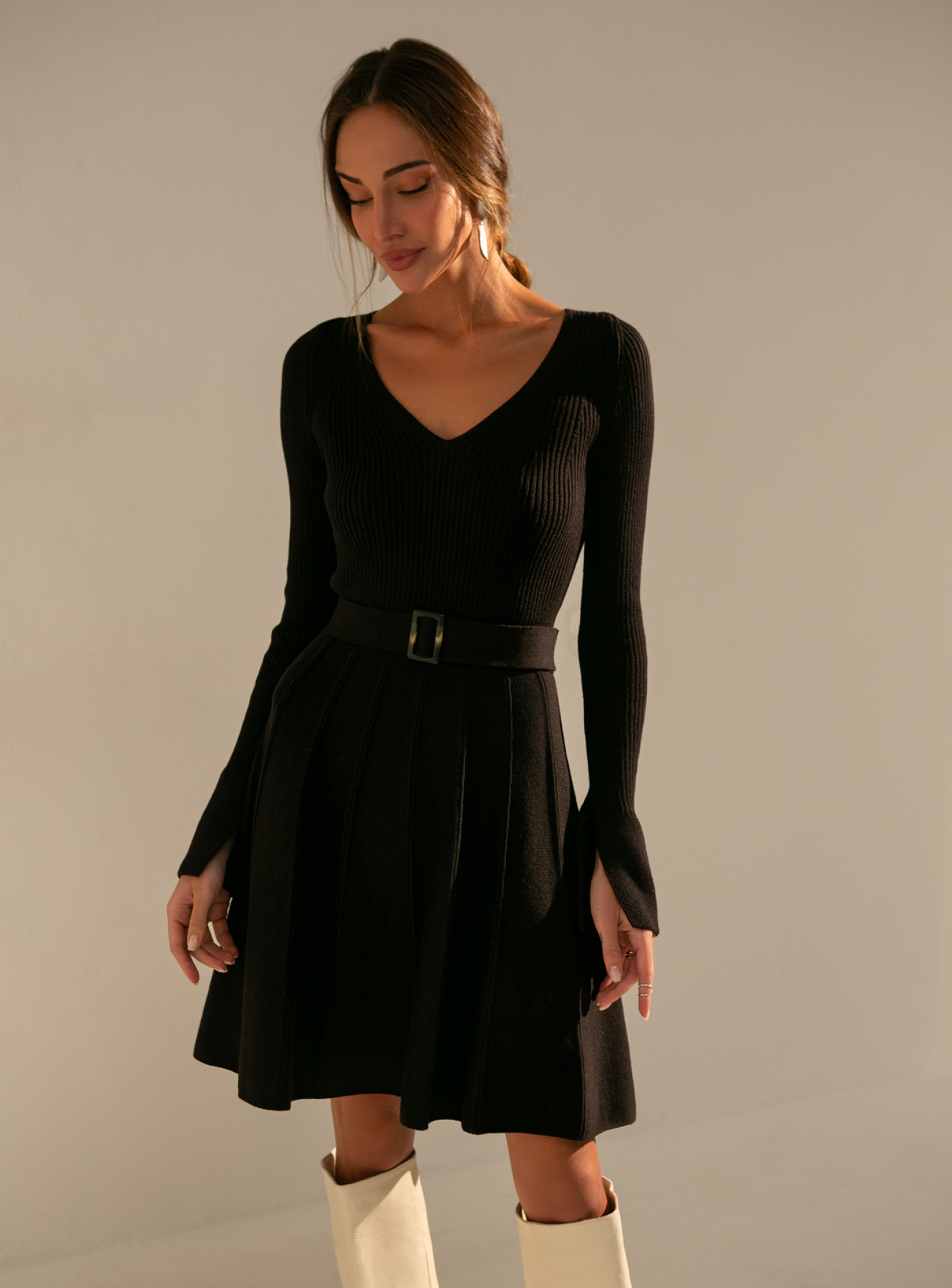 Также эти модели хорошо смотрятся как с минималистичными украшениями, так и без них. Платья с юбкой плиссе от 25 Union легко дополняются лодочками и пиджаком для классического делового образа. А если взять ботильоны, кожаный ремень и косуху, можно получить стильный повседневный вариант.