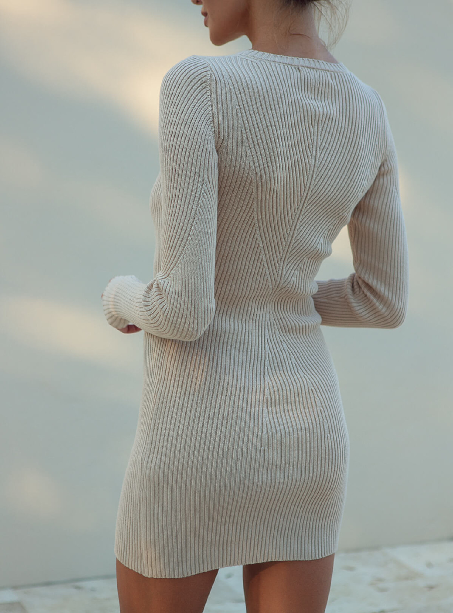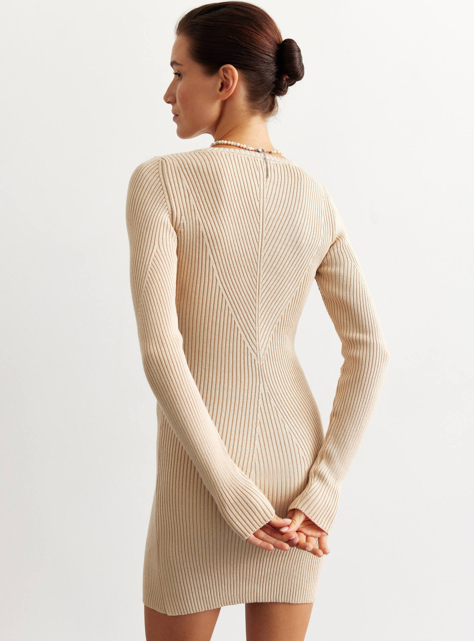 Платье силуэтное мини фактурной вязки крем