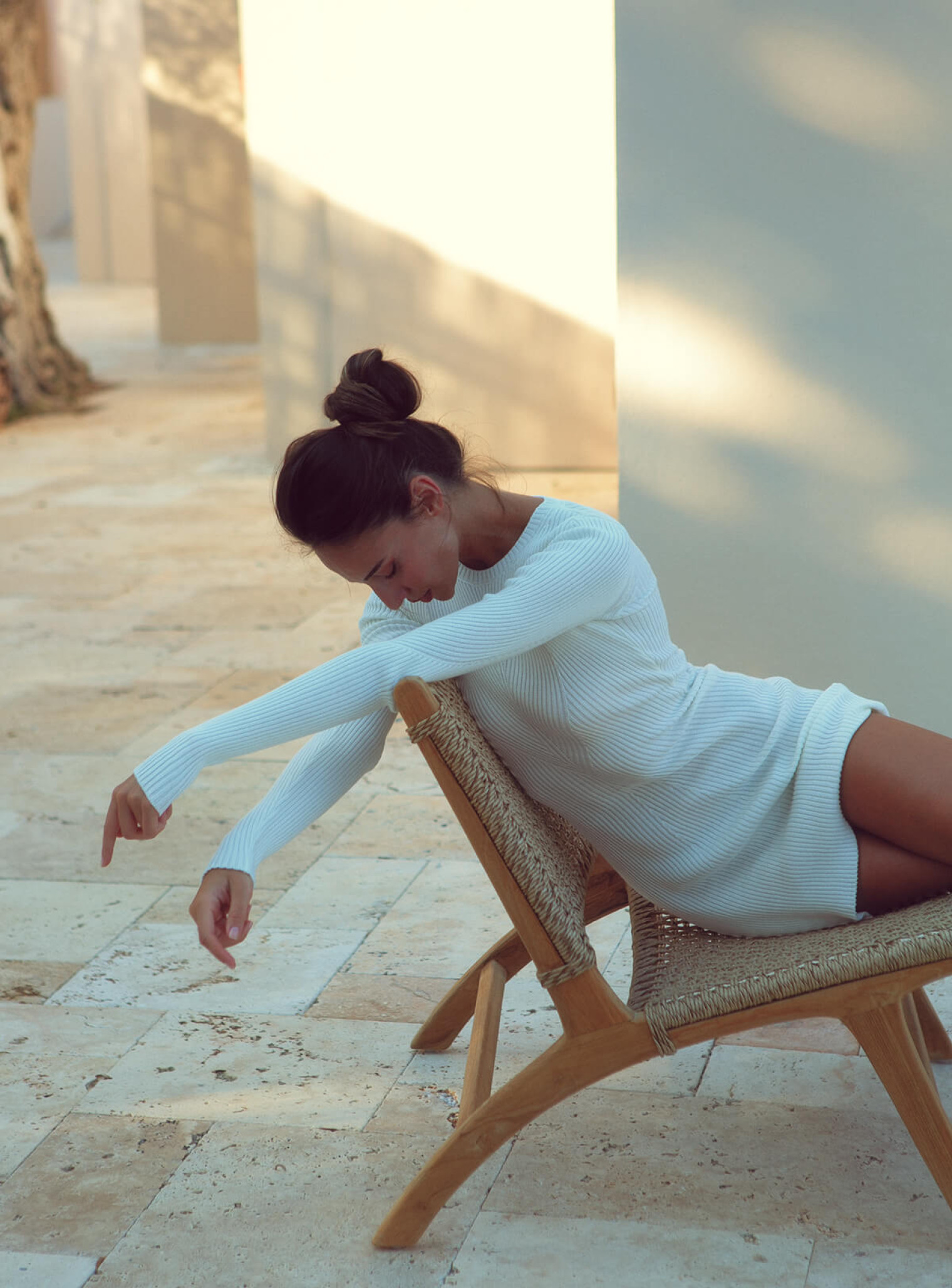 Силуэтное платье фактурной вязки, подчеркивающее женскую красоту. Выполнена из нежного хлопка в мини длине для твоих стильных образов.