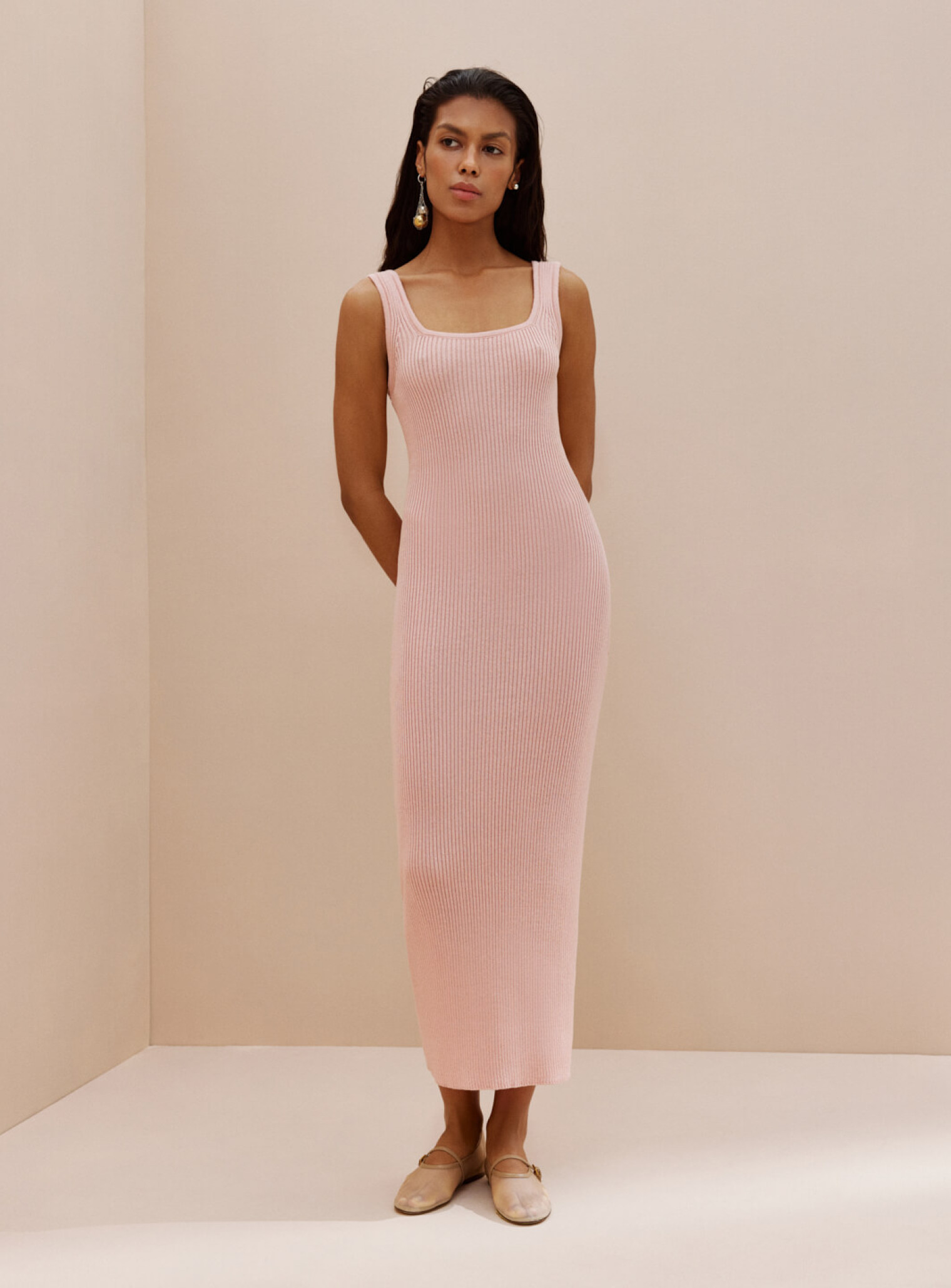 Базовое платье миди с квадратным вырезом, повторяющимся на спине. Выполнено из фактурного трикотажа в резинку, что плавно очерчивает фигуру и вытягивает силуэт. Доступно к заказу в двух вариантах длины. Платье можно стилизовать для повседневной жизни или особых событий, меняя аксессуары.