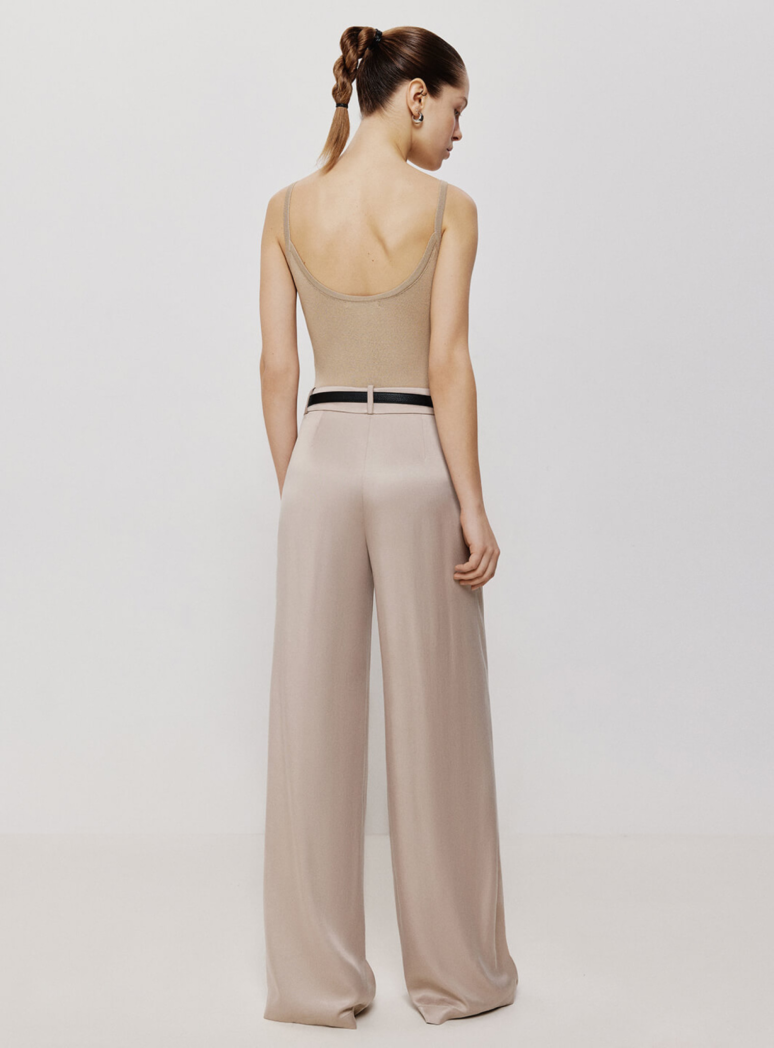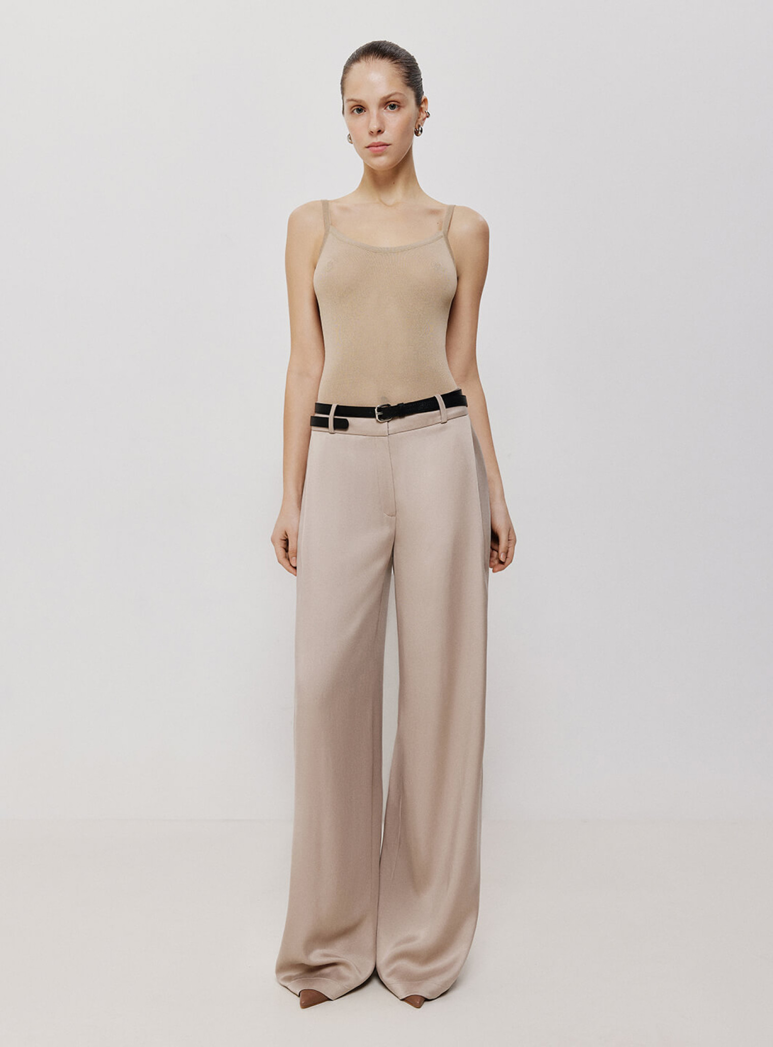 Сплошной боди на тонких бретелях из полупрозрачной вискозы. Нежная и деликатная ткань дарит ощущение воздушности и плавно описывает силуэт. Сочетается в комплект с джемпером оверсайз из вискозы и поможет создать стильную многослойность образа.