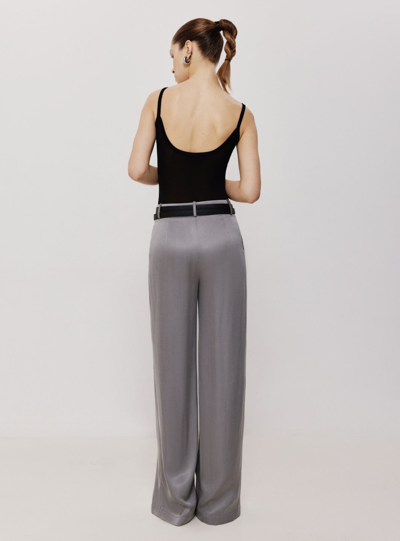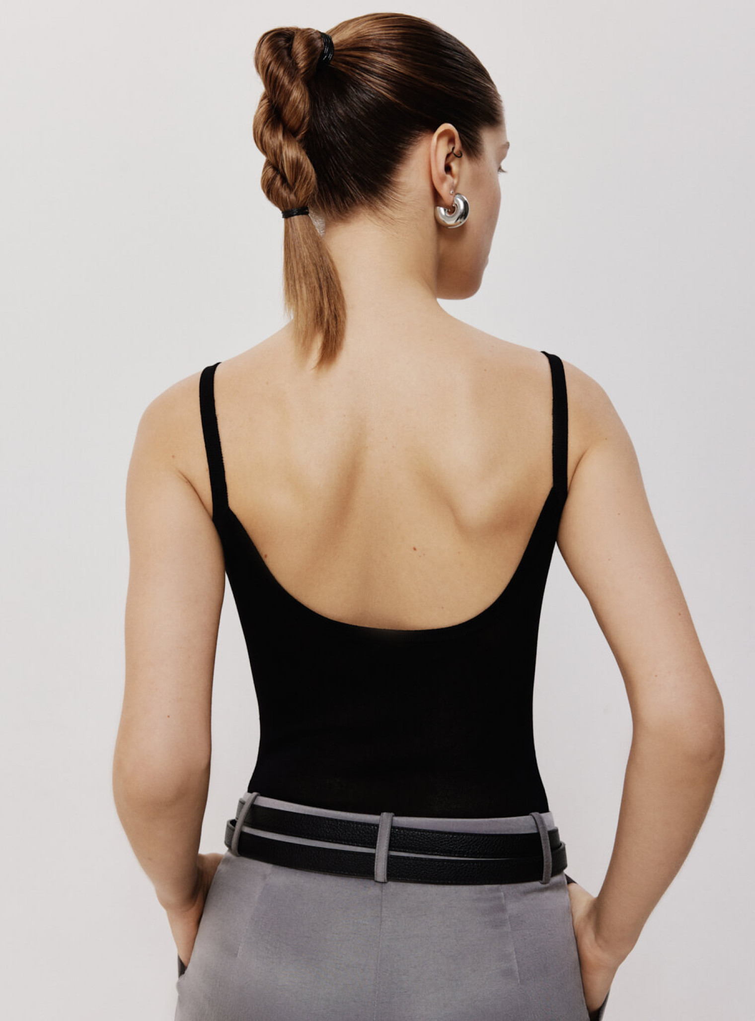 Сплошной боди на тонких бретелях из полупрозрачной вискозы. Нежная и деликатная ткань дарит ощущение воздушности и плавно описывает силуэт. Сочетается в комплект с джемпером оверсайз из вискозы и поможет создать стильную многослойность образа.