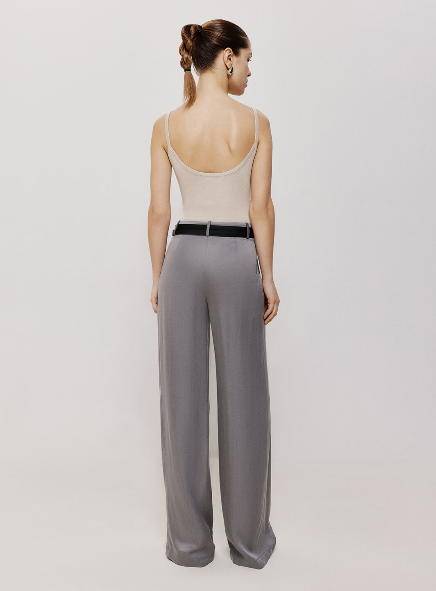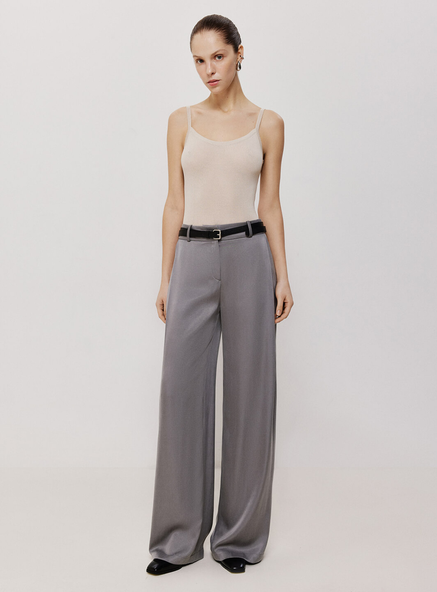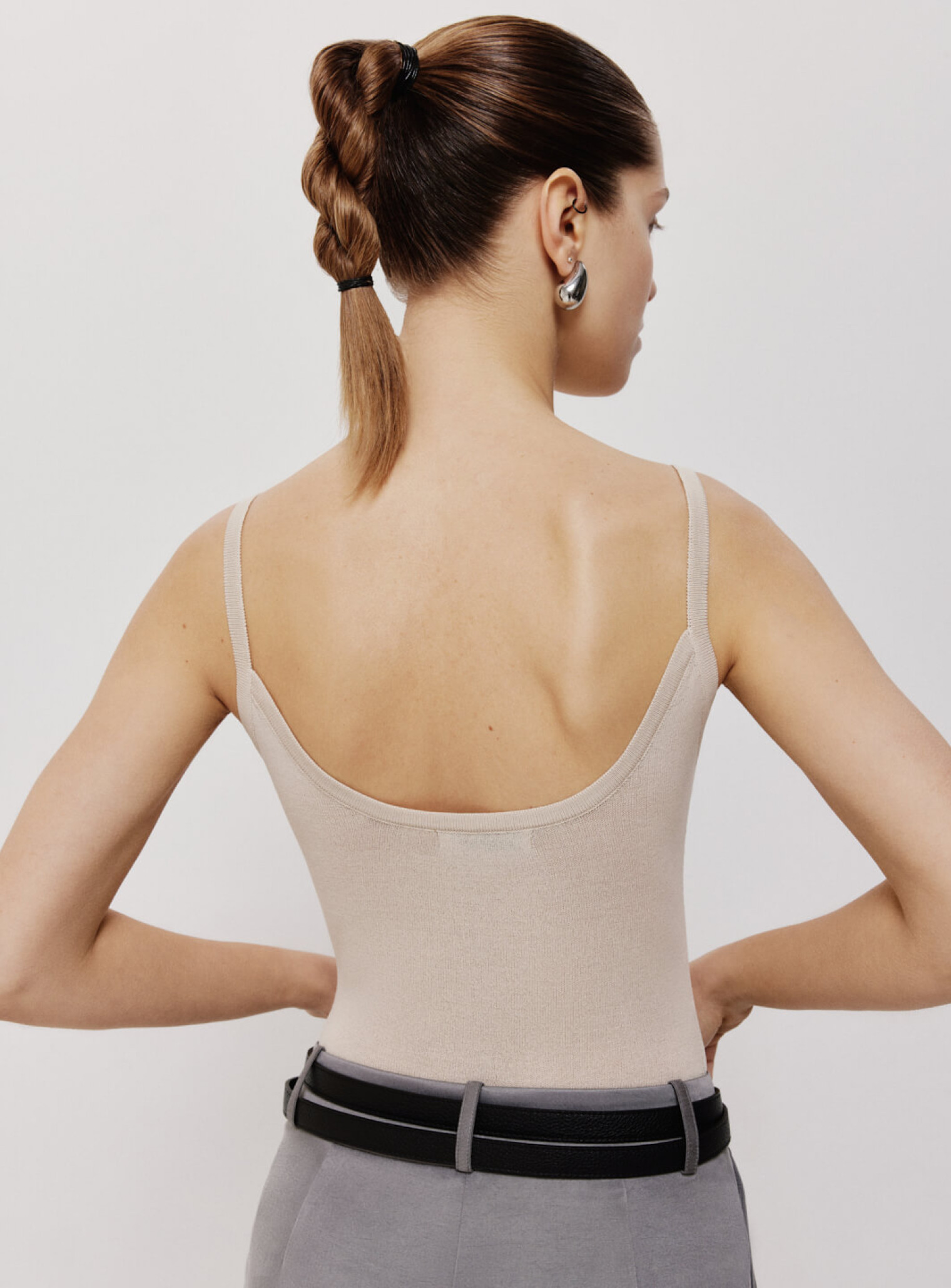 Сплошной боди на тонких бретелях из полупрозрачной вискозы. Нежная и деликатная ткань дарит ощущение воздушности и плавно описывает силуэт. Сочетается в комплект с джемпером оверсайз из вискозы и поможет создать стильную многослойность образа.