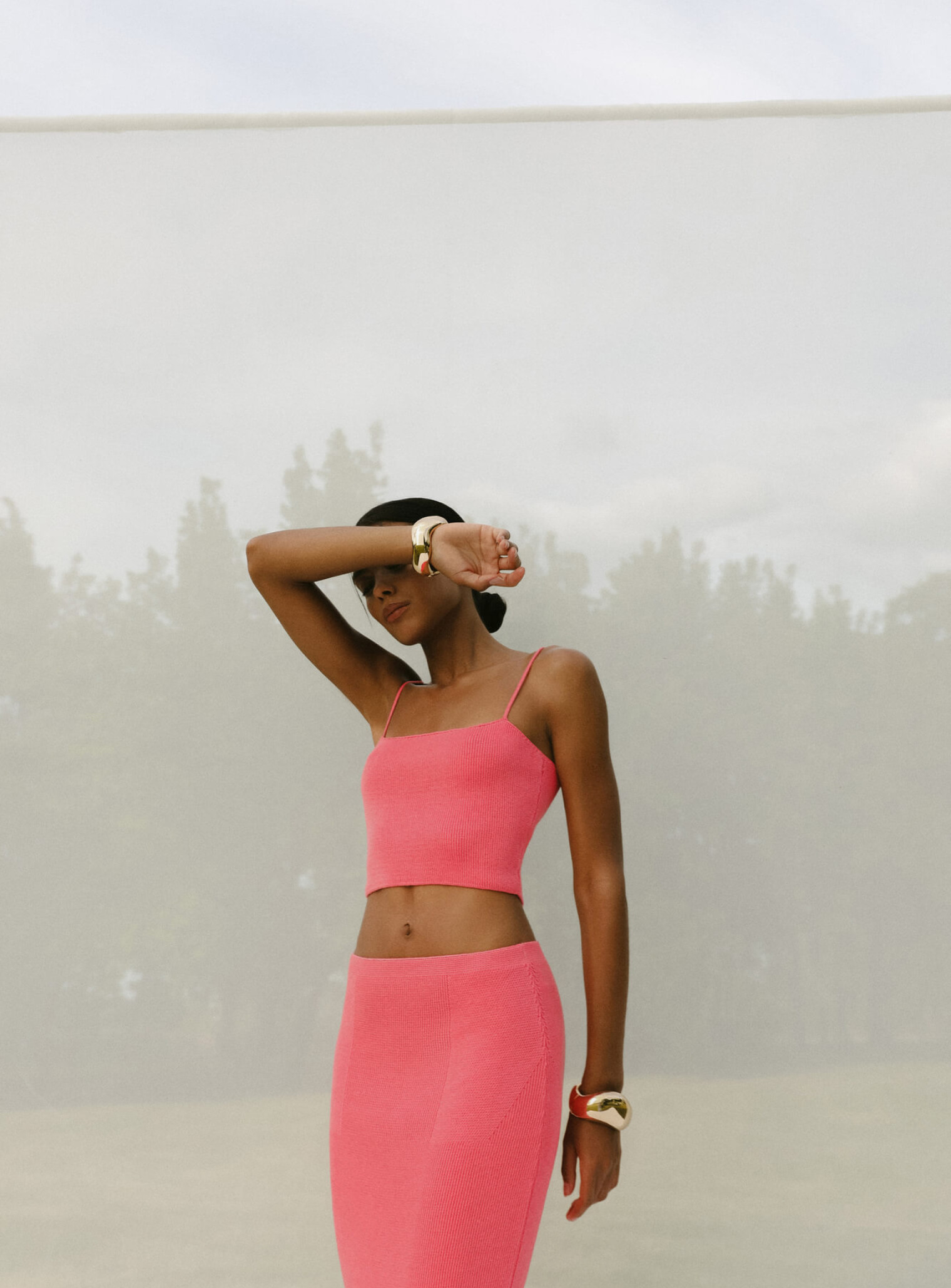 Топ бандо на тонких бретелях Леймон коралловый