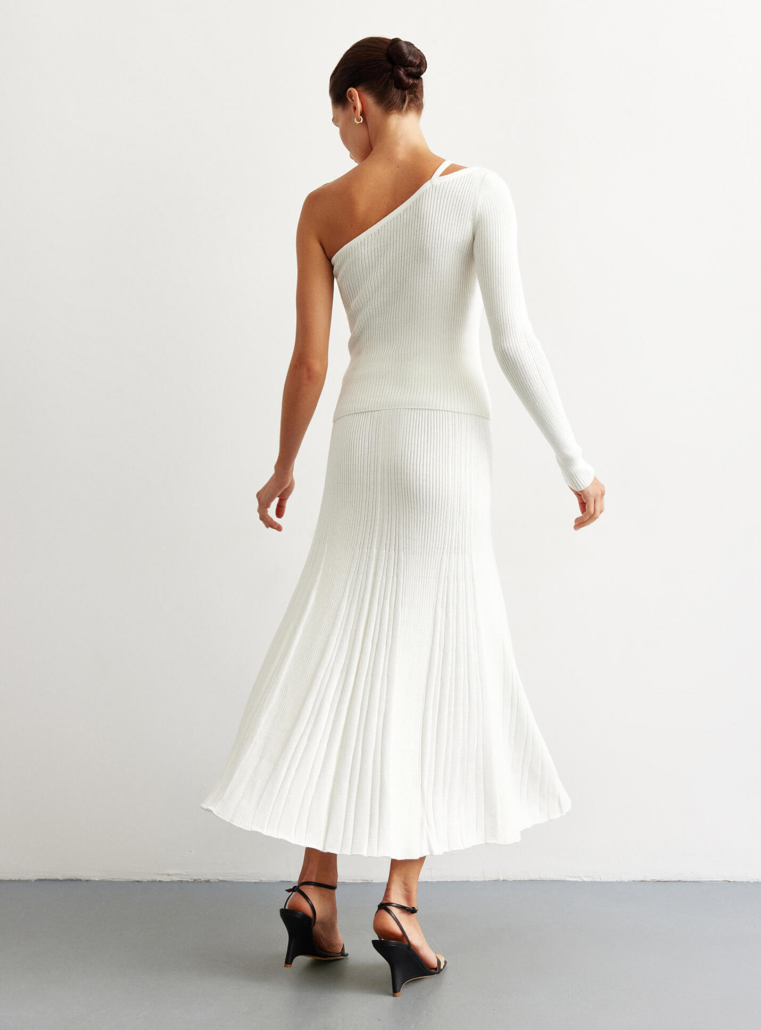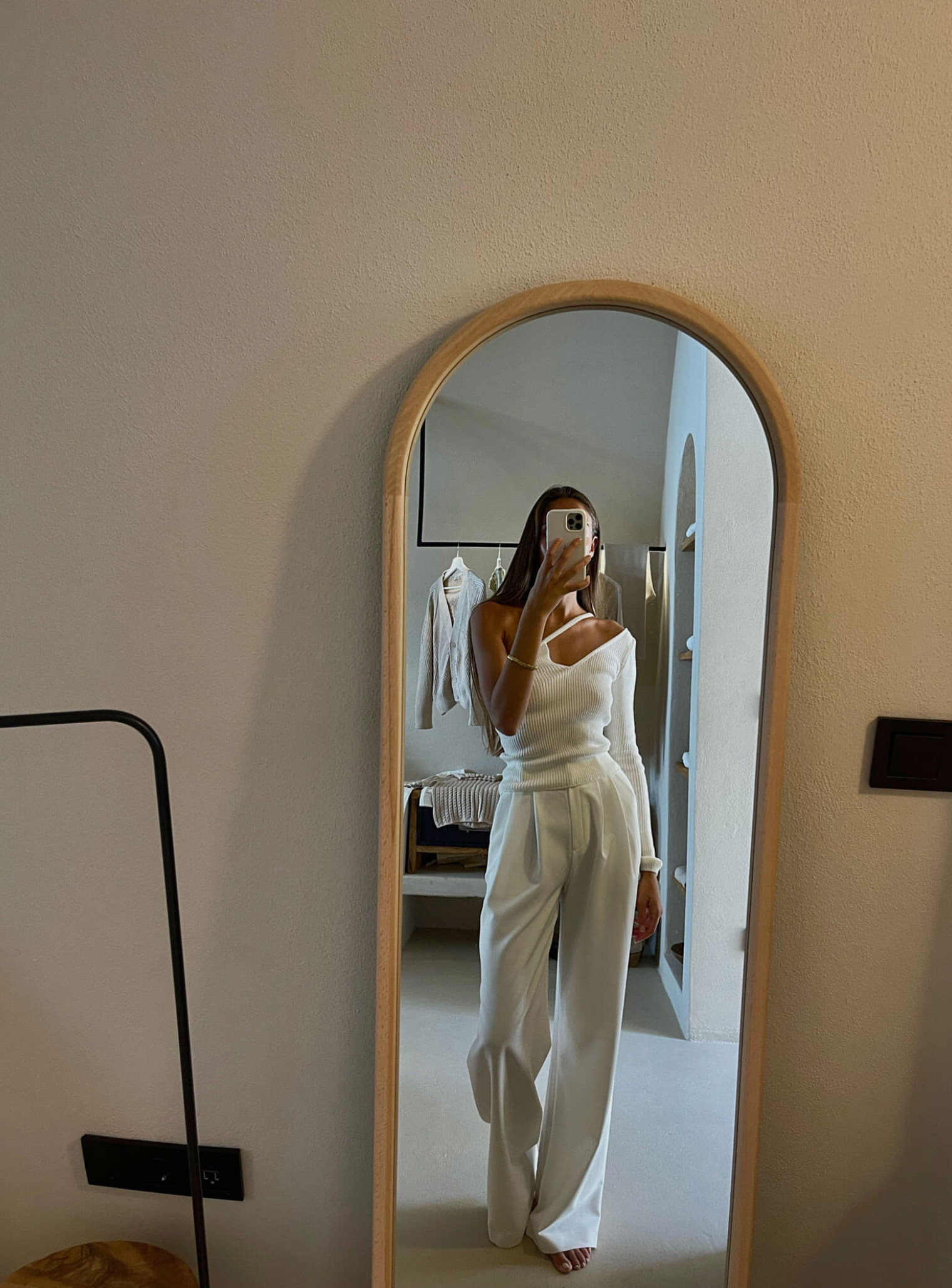 Трендовый топ на плечо, который можно носить в двух вариациях. Станет ярким акцентом в вашем гардеробе и идеально дополнит образы с брендовыми жакетами и пальто.
