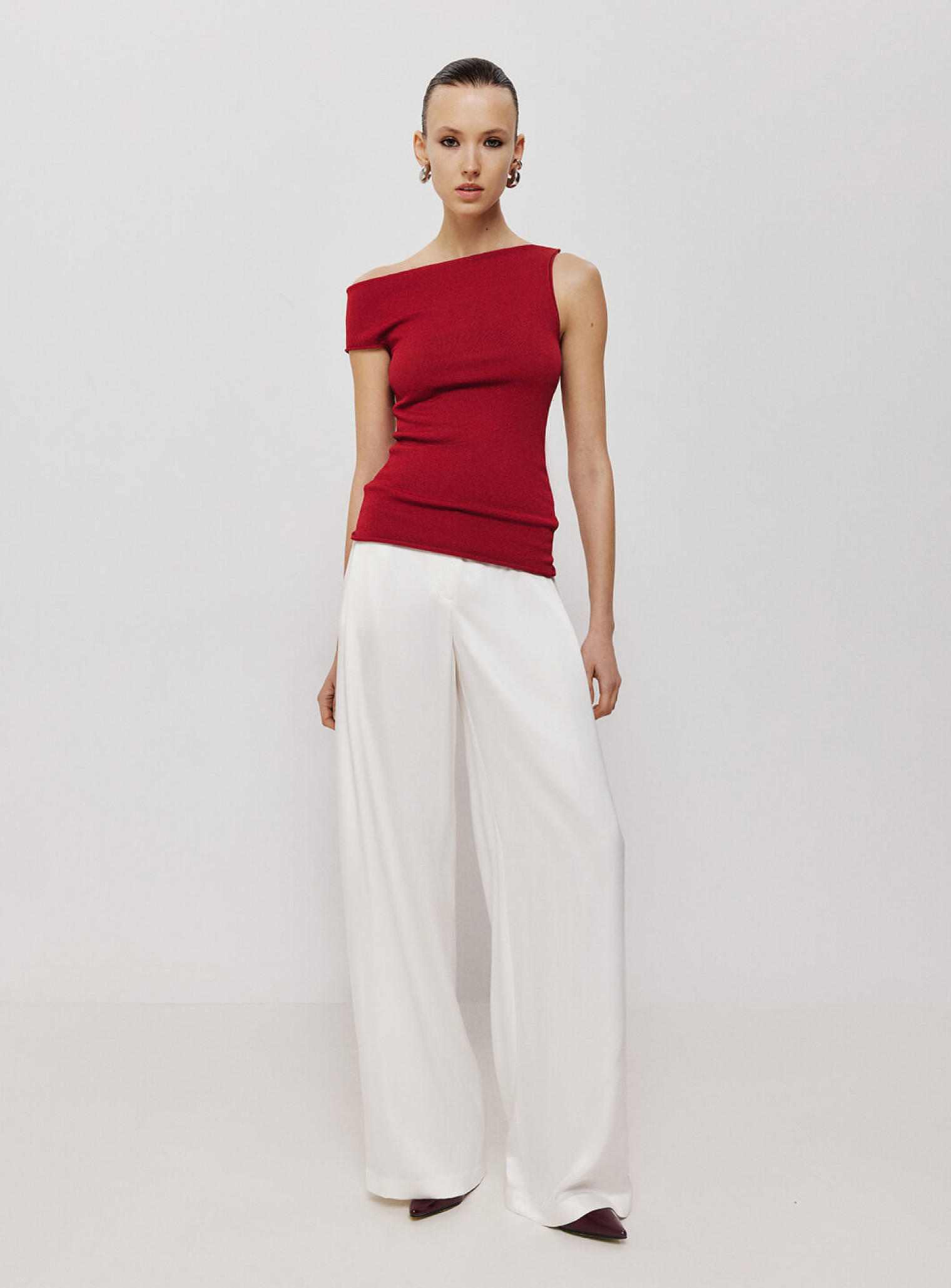 Топ с ассиметричным плечом Николь красный