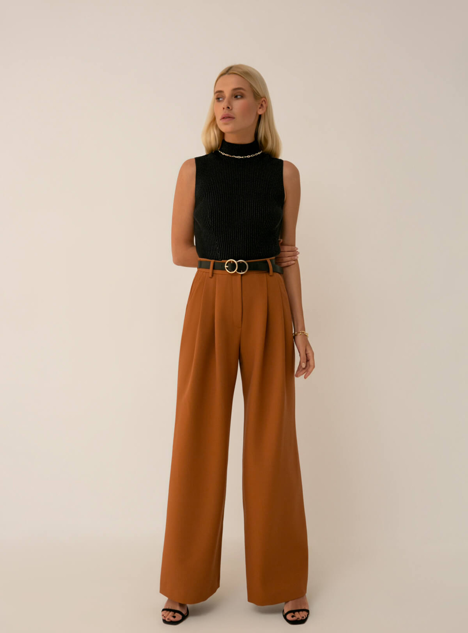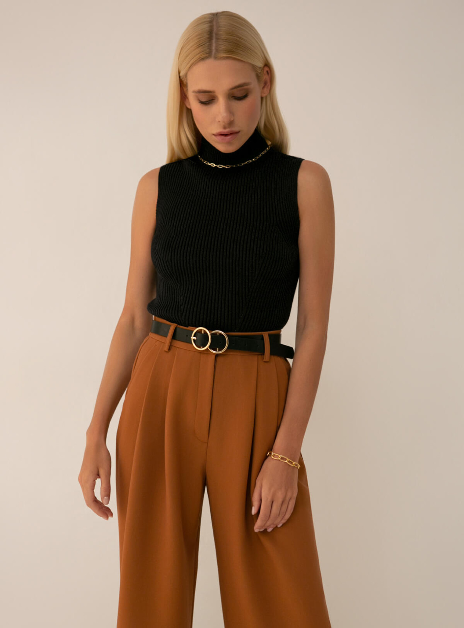 Базовый топ в рубчик с высоким горлом выполнен из натурального хлопка, очень приятен к телу. Идеальная капсульная вещь для твоего гардероба.