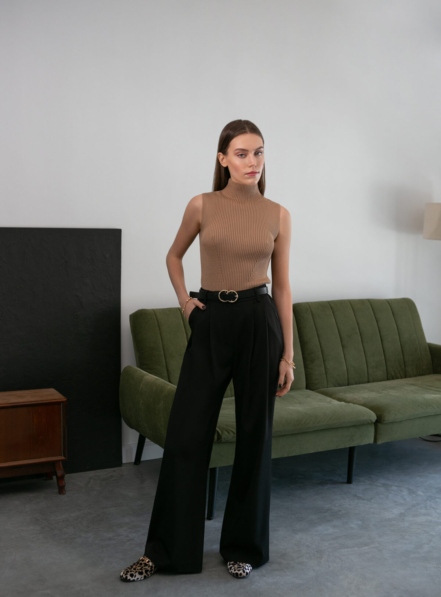 Базовый топ в рубчик с высоким горлом выполнен из натурального хлопка, очень приятен к телу. Идеальная капсульная вещь для твоего гардероба.
