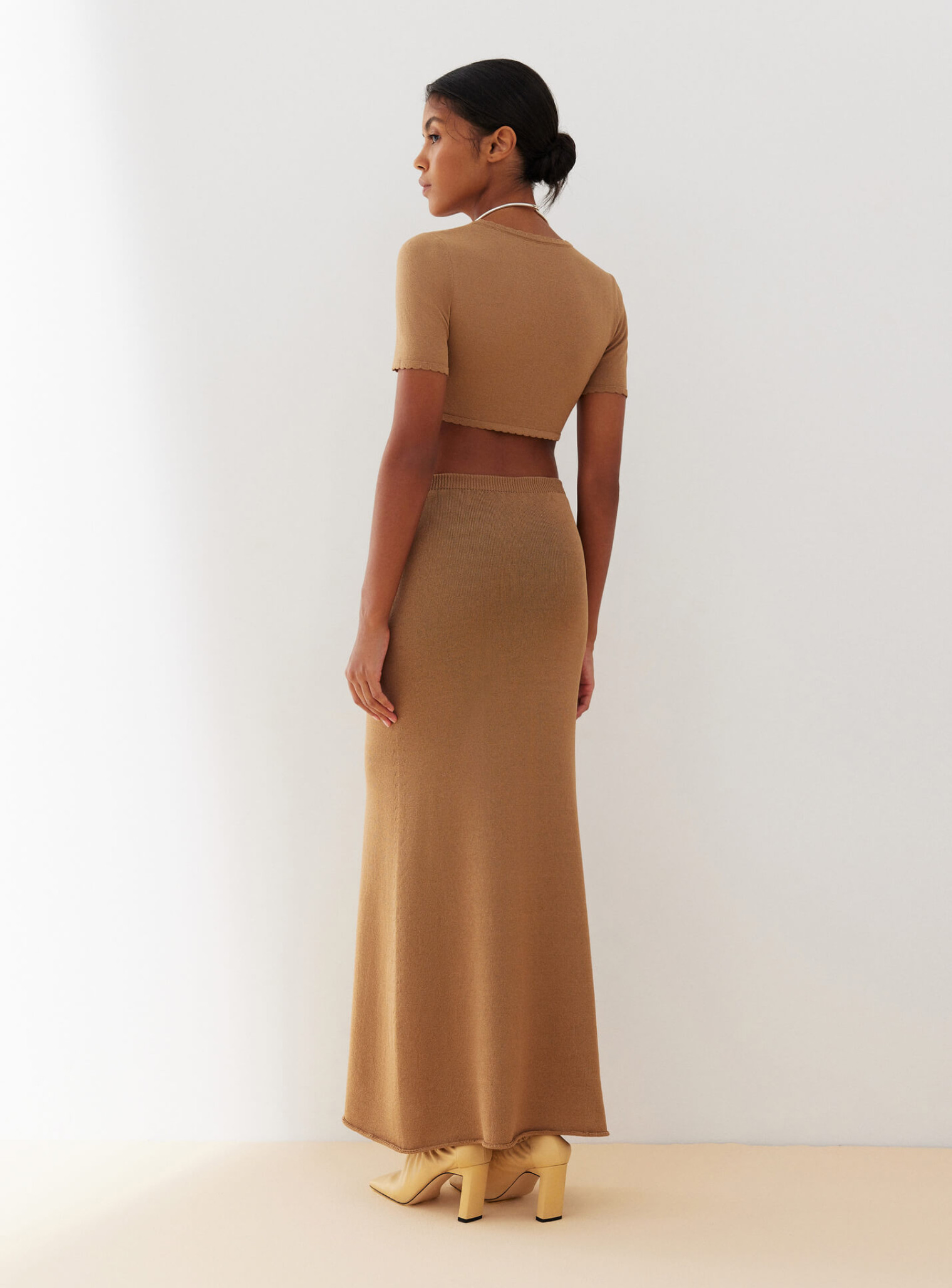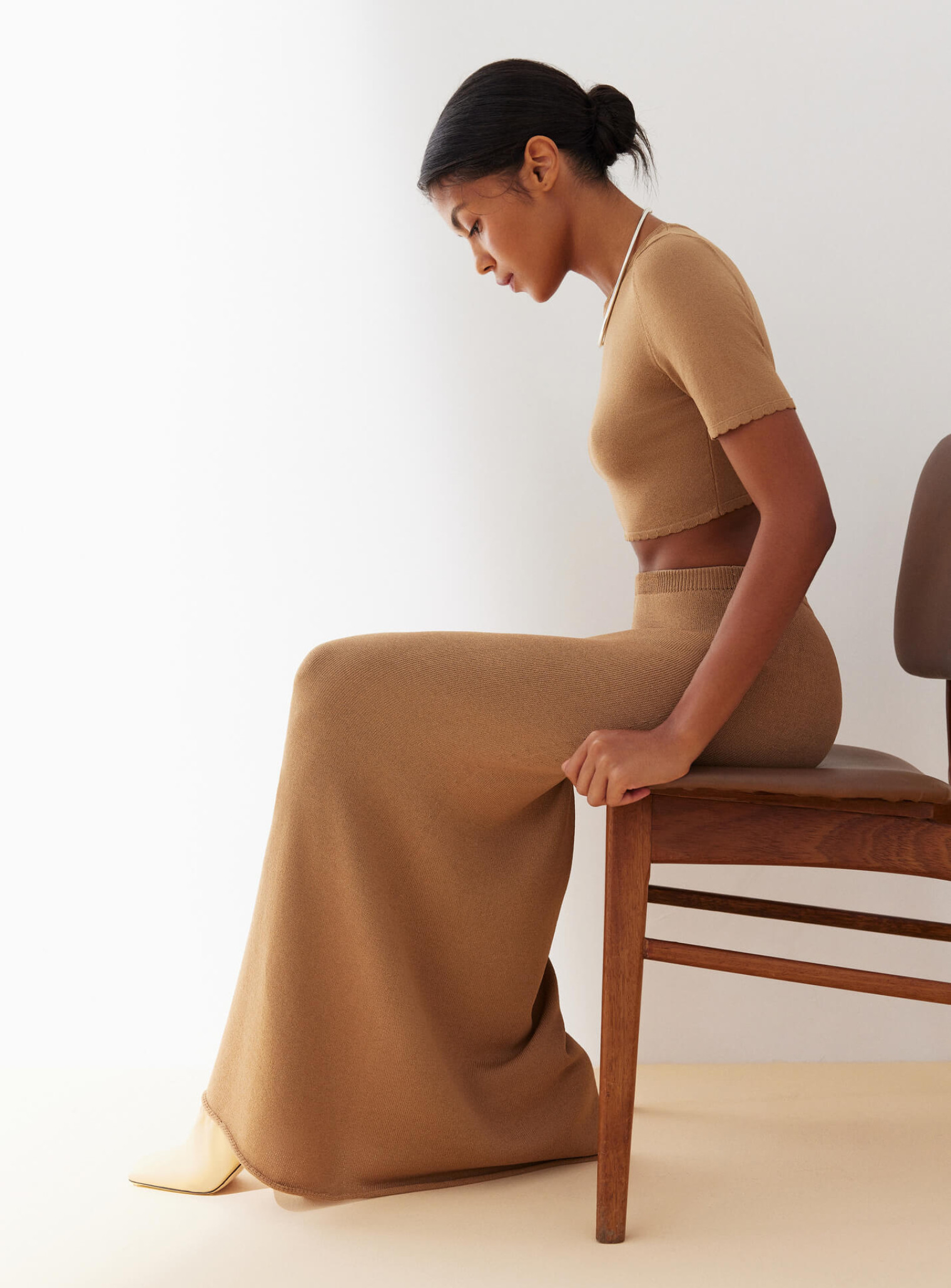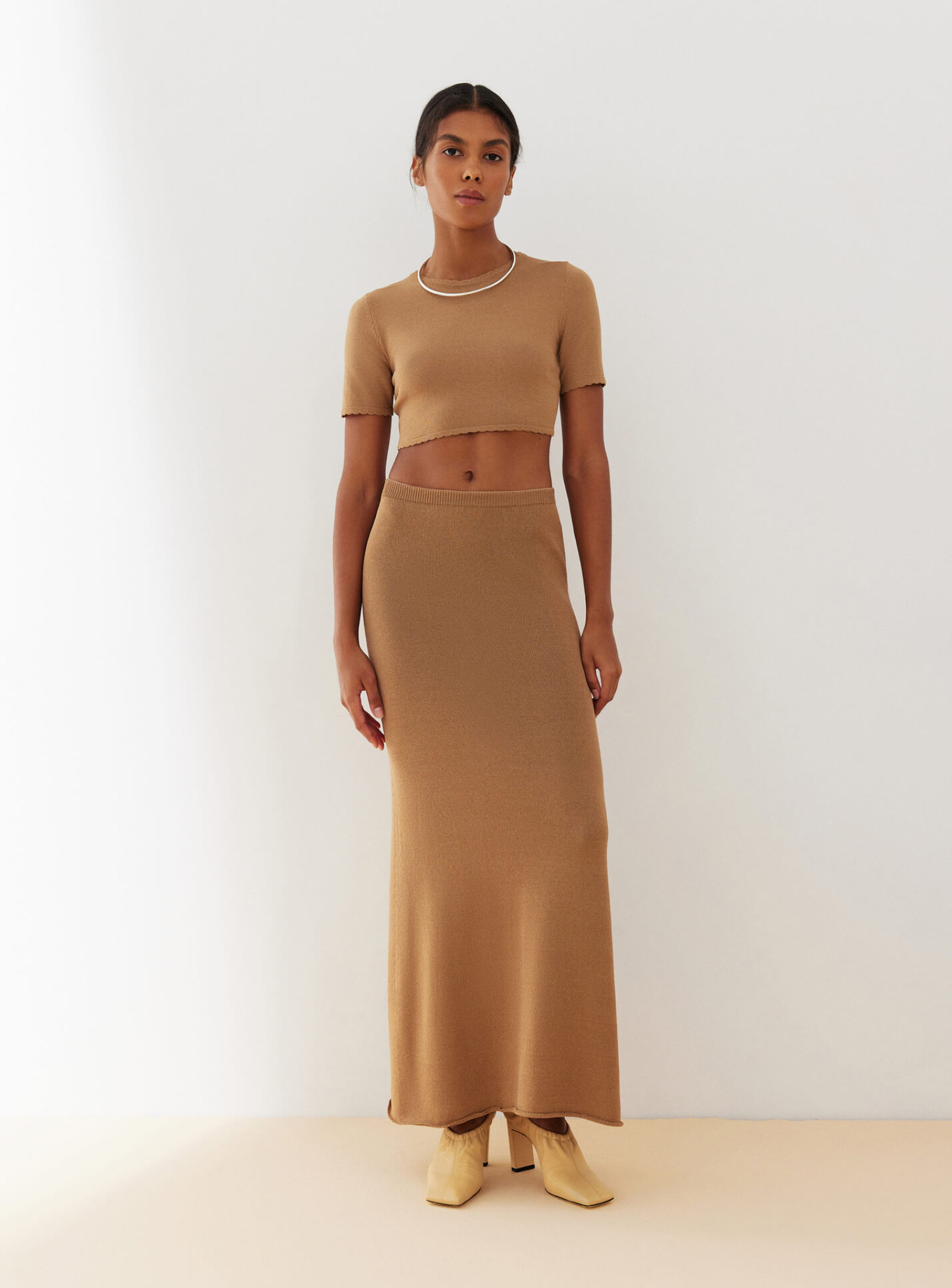 Красивая бесшовная юбка в макси длиной с нежной вискозы. Выполнена с трендовой посадкой на тонкой комфортной резинке. Сочетается в костюме с гольфом и топом из натуральной вискозы.