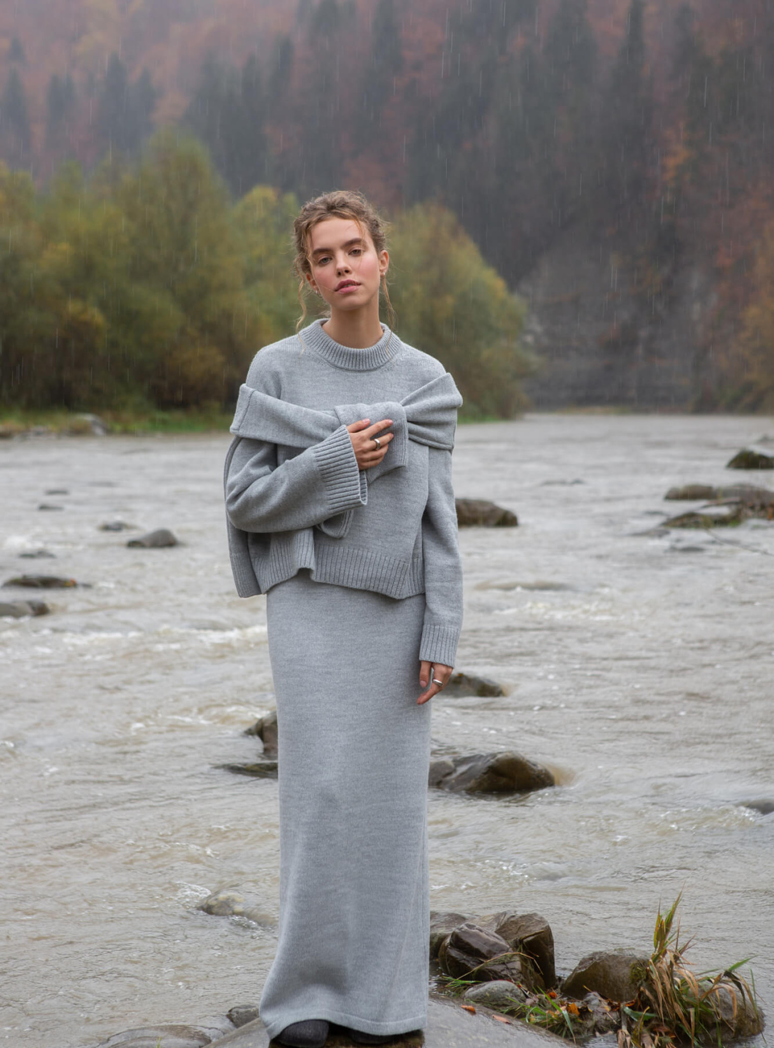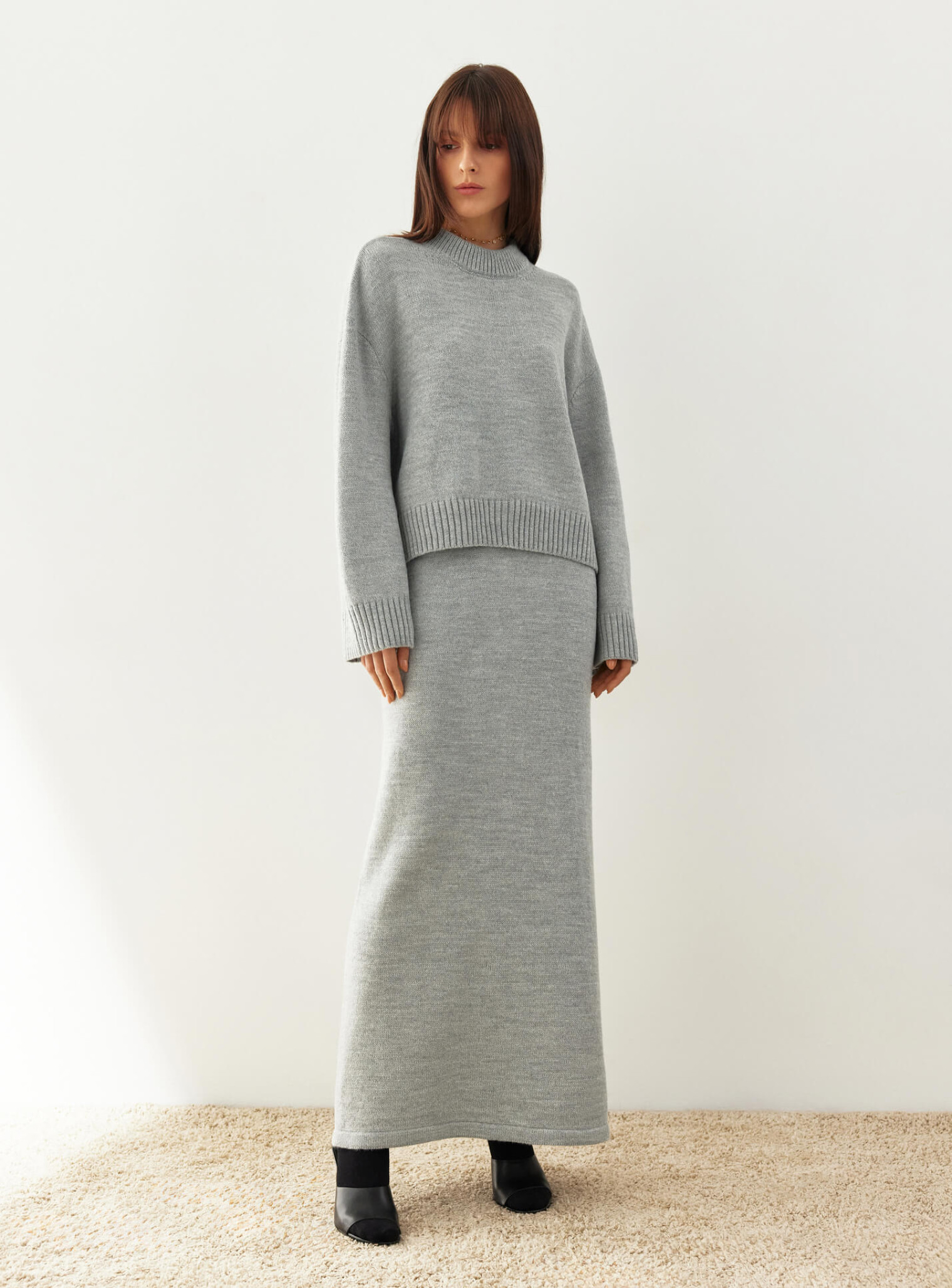 Юбка выполнена из мягкой теплой пряжи с деликатной резинкой на талии в трендовой длине макси, что позволяет создавать элегантные образы для холодного сезона. Сочетается в костюм со свитером с манжетами, или майкой и кардиганом прямого кроя.