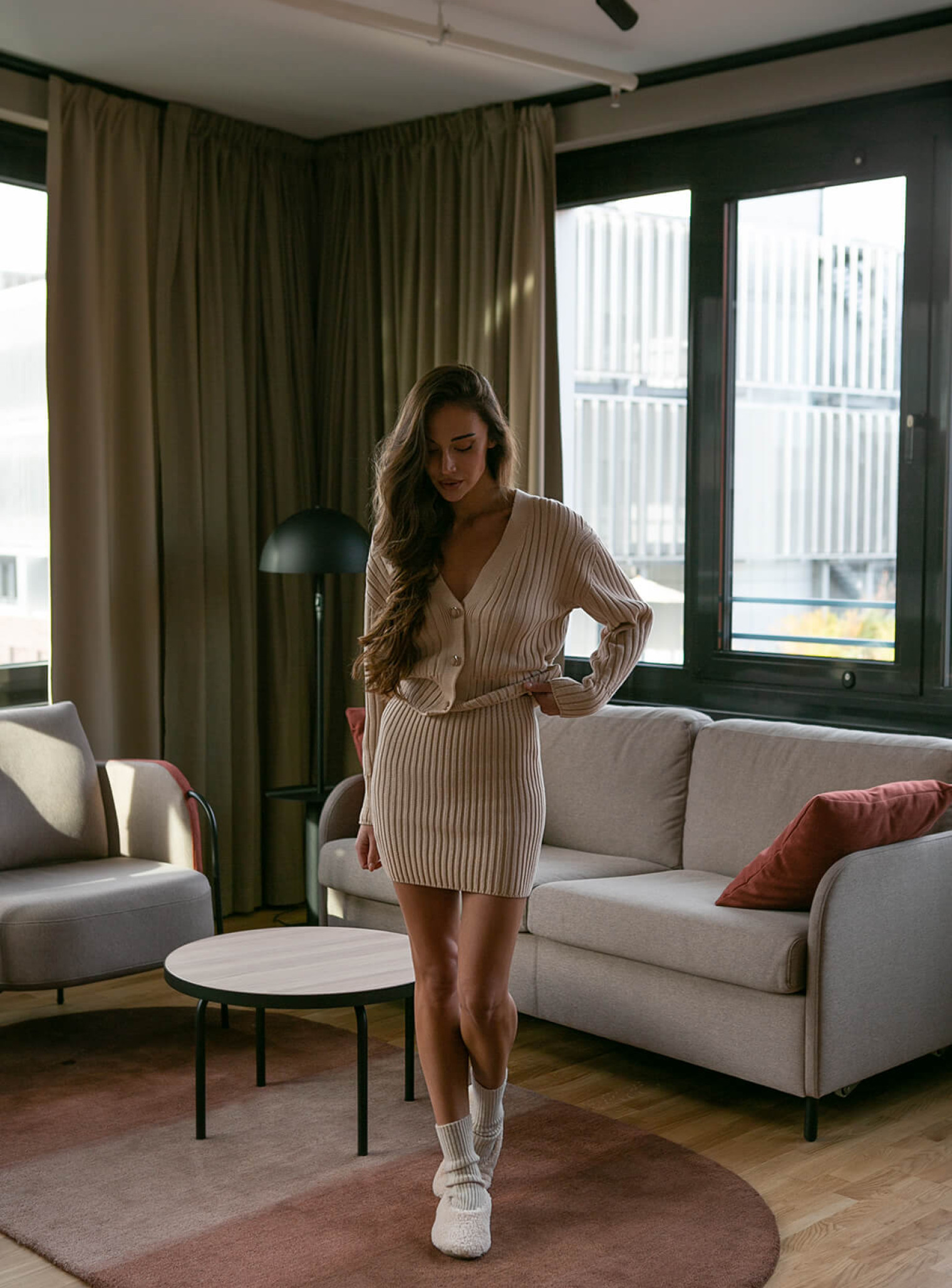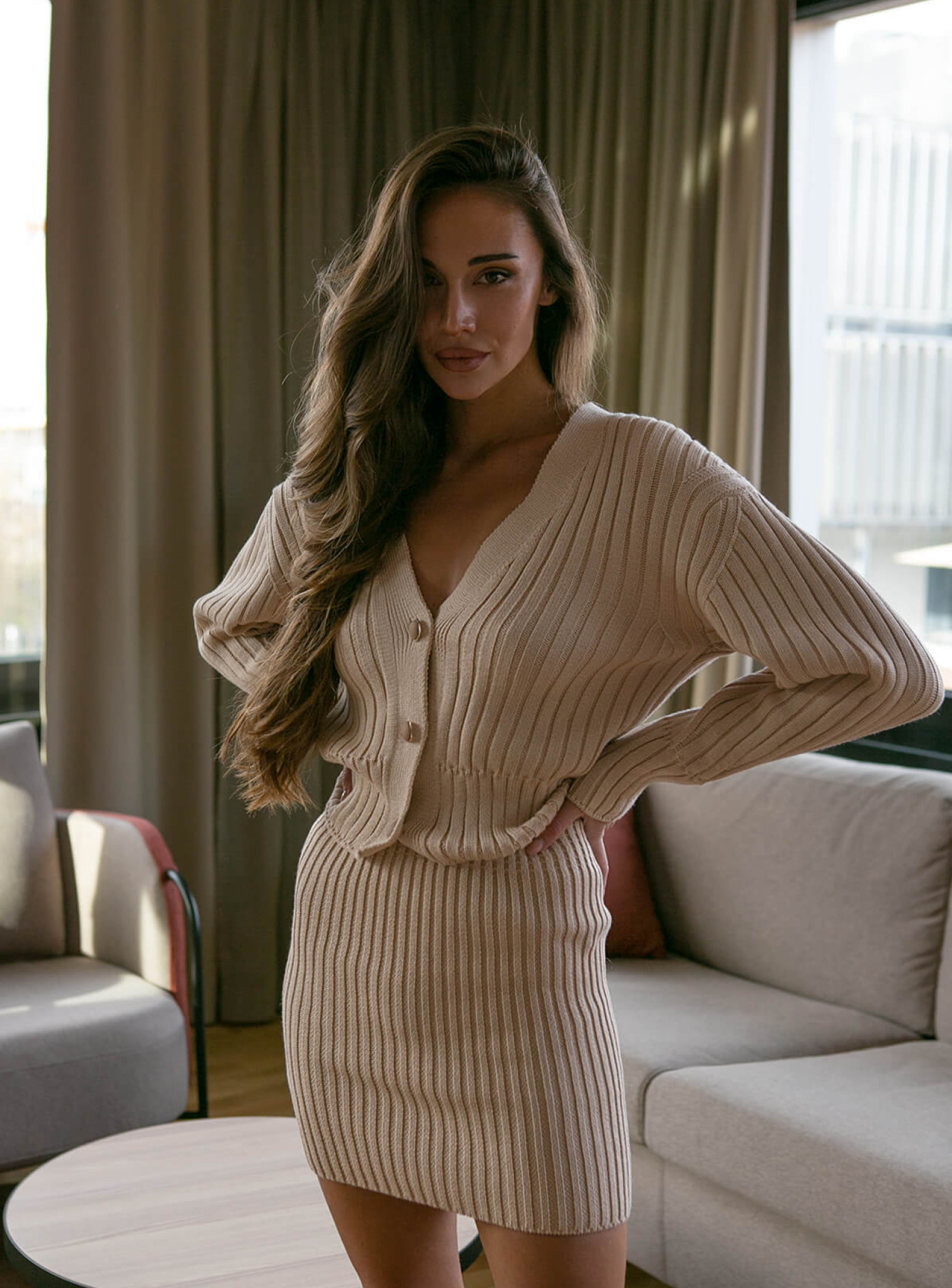 Актуальная юбка мини подчеркивающая силуэт – идеальный вариант придать нежности образам в холодное время года. Сочетается в костюме с кардиганом мини.