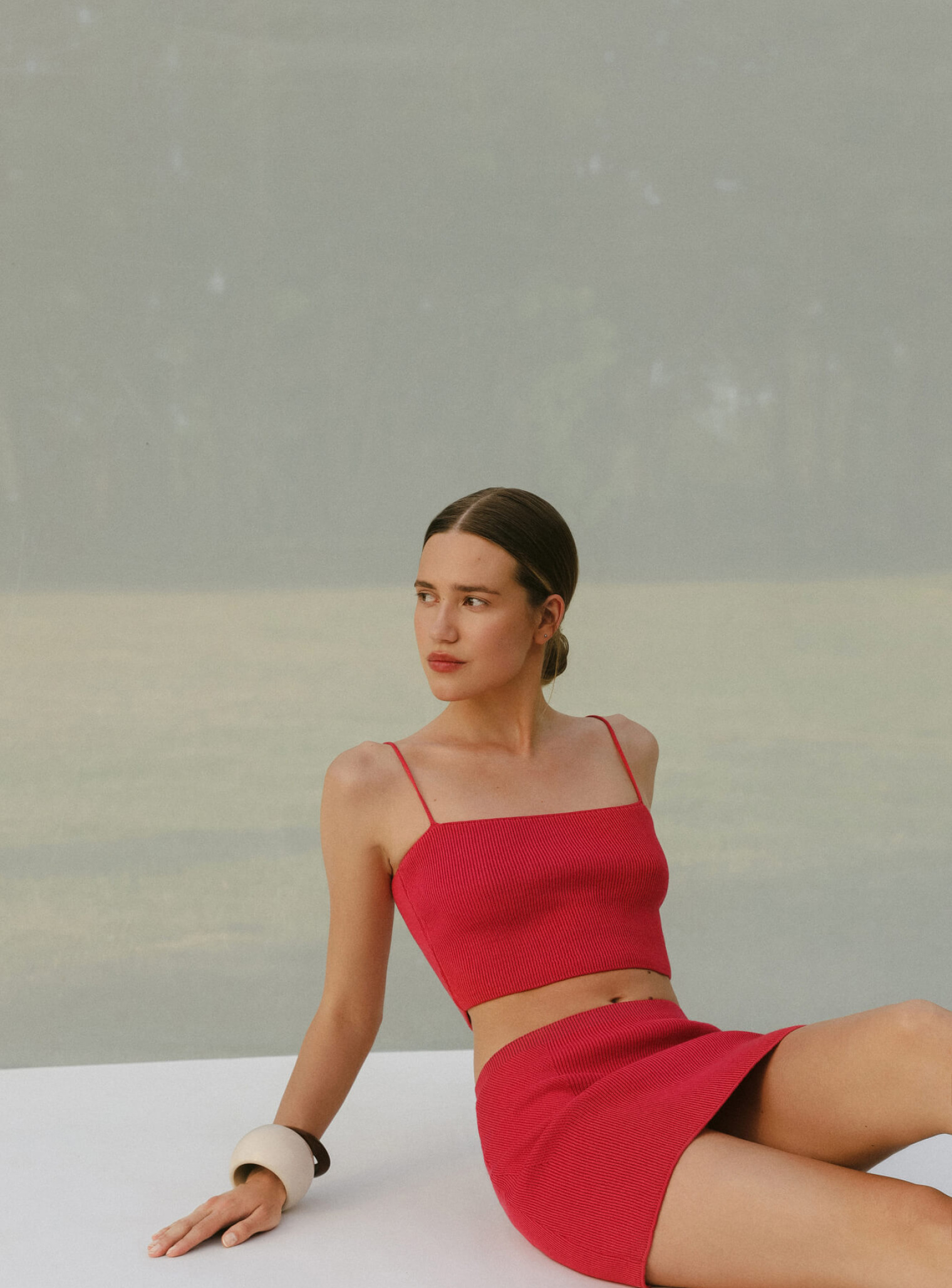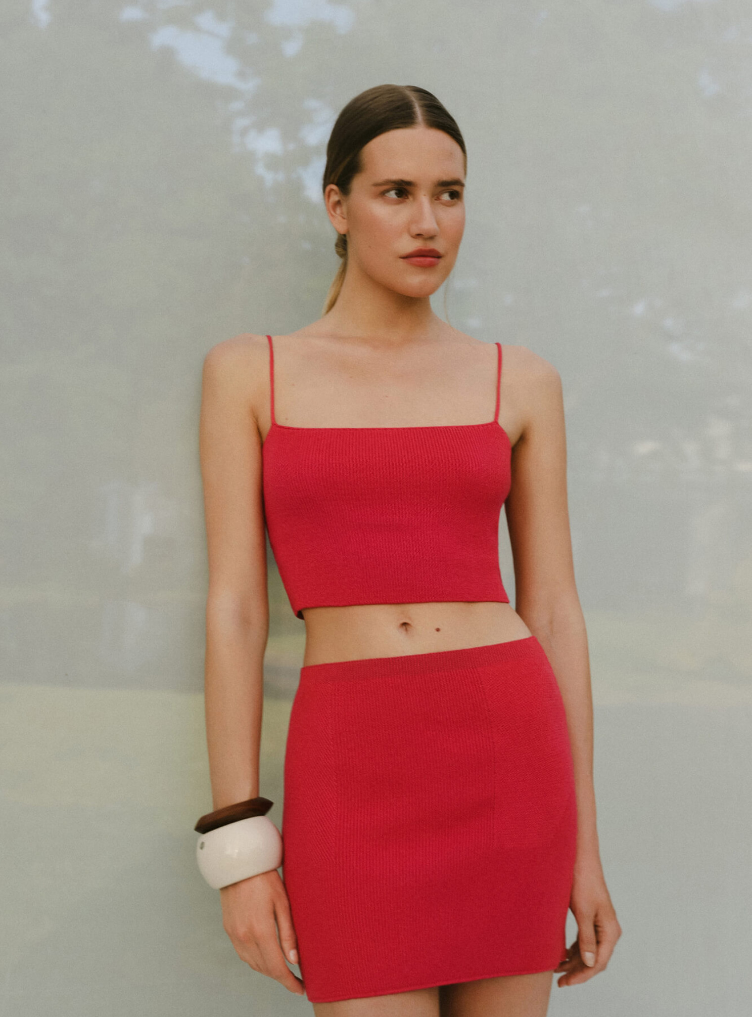 Базовая юбка мини с рисунком имитацией баски, подчеркивающей бедра, на комфортной мягкой резинке, позволяющей посадить юбку на линии талии. Выполнена из фактурной вязки, которая хорошо тянется и облегает силуэт. Качество натурального хлопка подарит вам комфорт и легкость в летние дни, а яркая цветовая гамма поможет освежить гардероб с помощью одного элемента. Сочетается в комплекте с топом бандо на тонких бретелях.