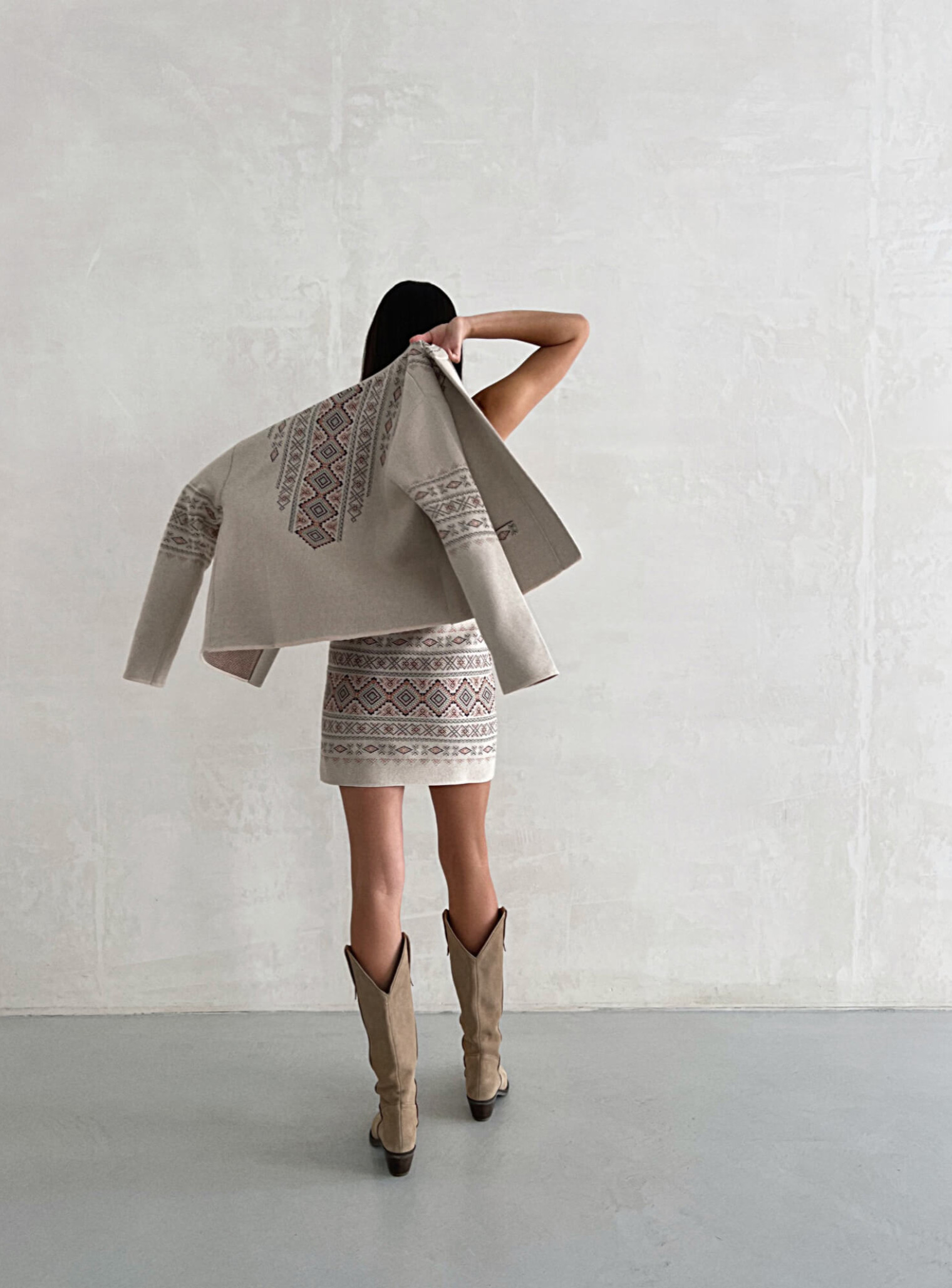 Жакет с украинской вышивкой на рукавах и спине, что символизирует несокрушимость и силу нашего народа. Стильный, современный и аутентичный жакет, который говорит лучше слов. Сочетается в комплекте с юбкой и брюками дропа Сила поколений